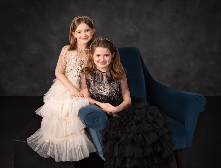 We capture timeless moments of families, pets, and children in our elegant black, white, and gold studio.